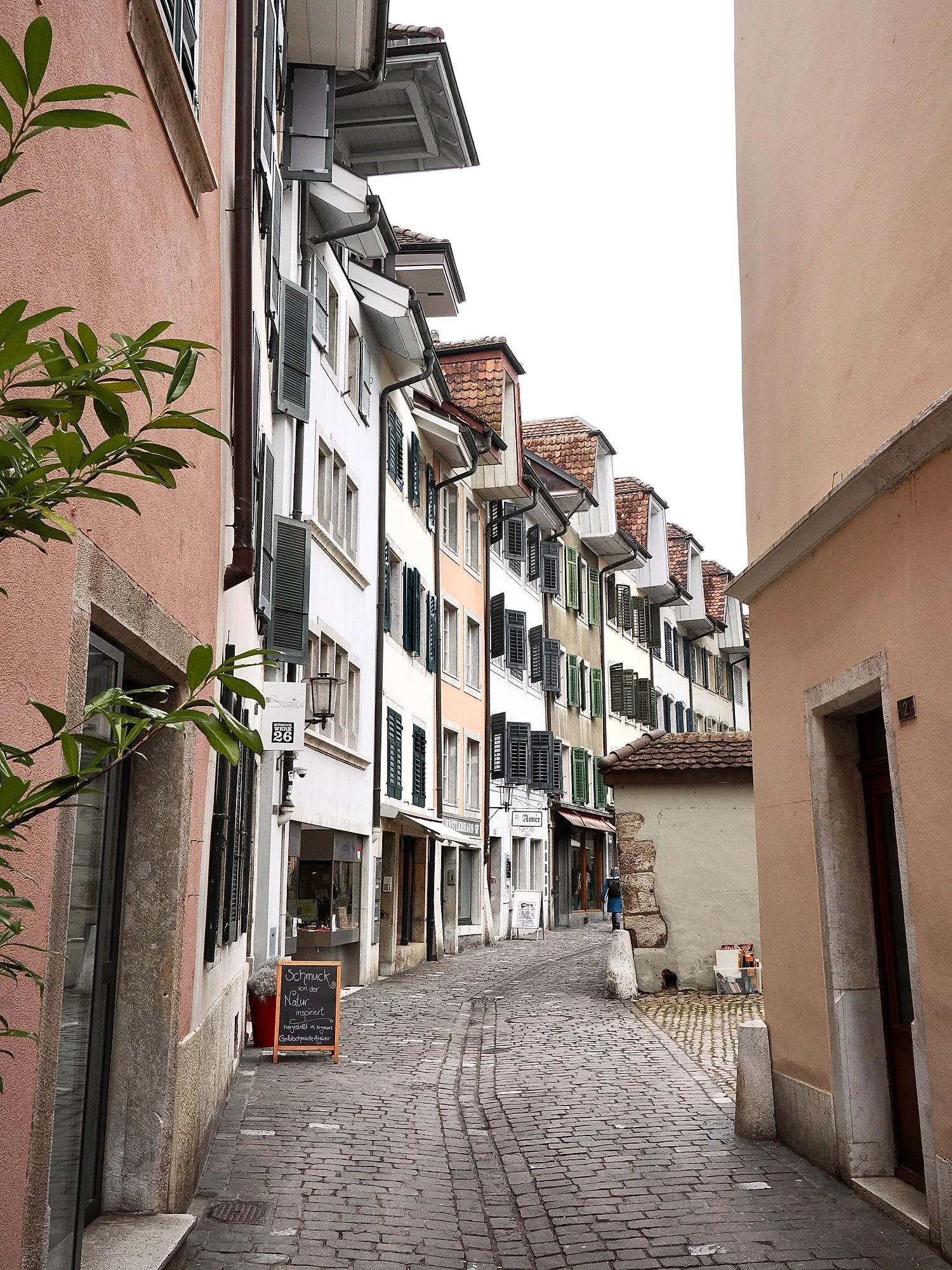 I ventured to Solothurn for the first time, and what a lovely surprise it turned out to be. The Old Town may be small, but it is mighty in its charm and beauty. Everywhere you look the number 11 makes a playful appearance — on signs, in shop names, on beer labels, and even on clocks — lending the city a quirky, memorable character. Another feature of Solothurn is the shutters; wherever you turn there are colorful wooden shutters, each painted in different hues and often neatly maintained, adding warmth and personality to the facades and making strolls through the streets feel like walking through a living watercolor.